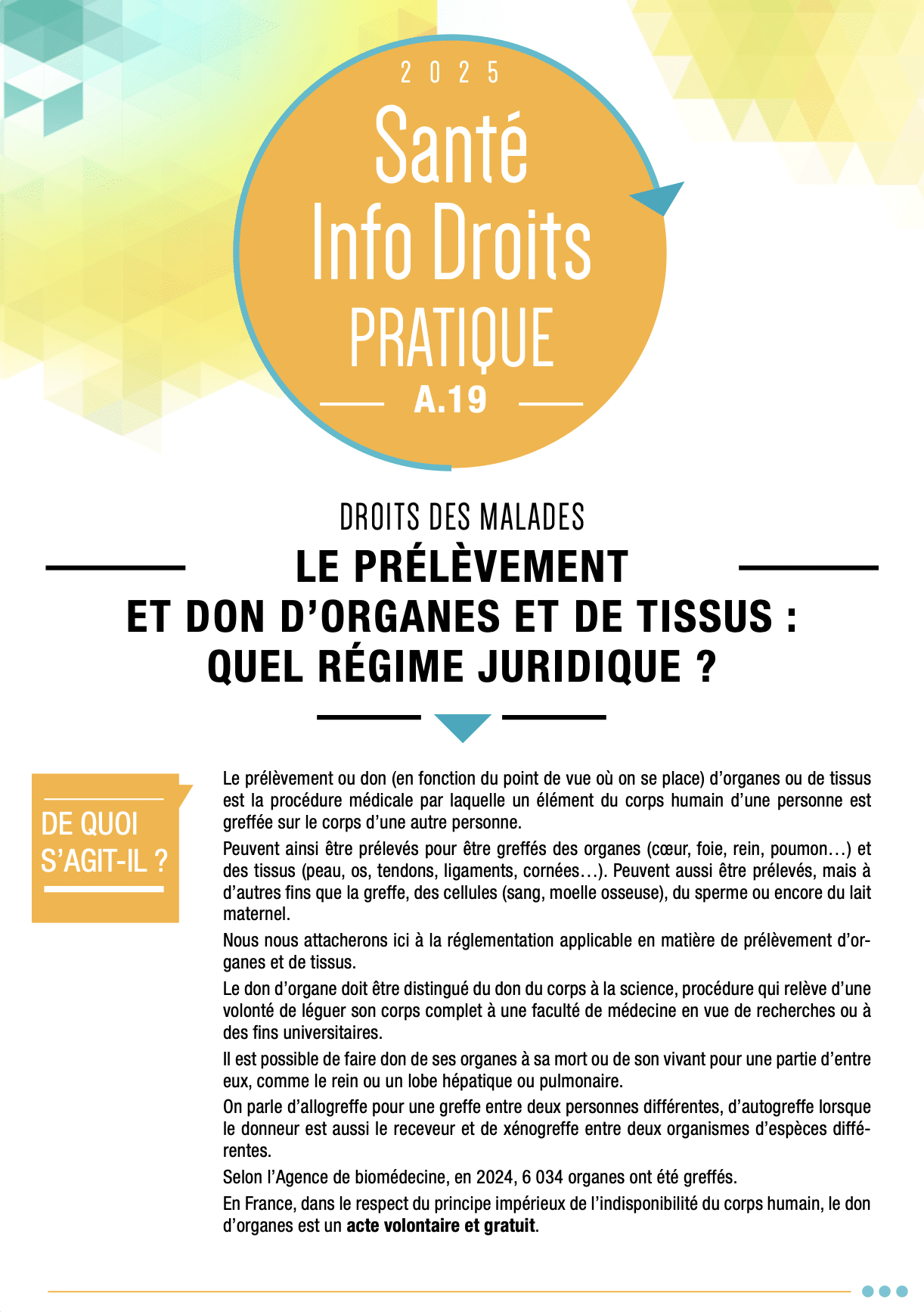 A.19 Le prélèvement et don d’organes et de tissus : quel régime juridique ?